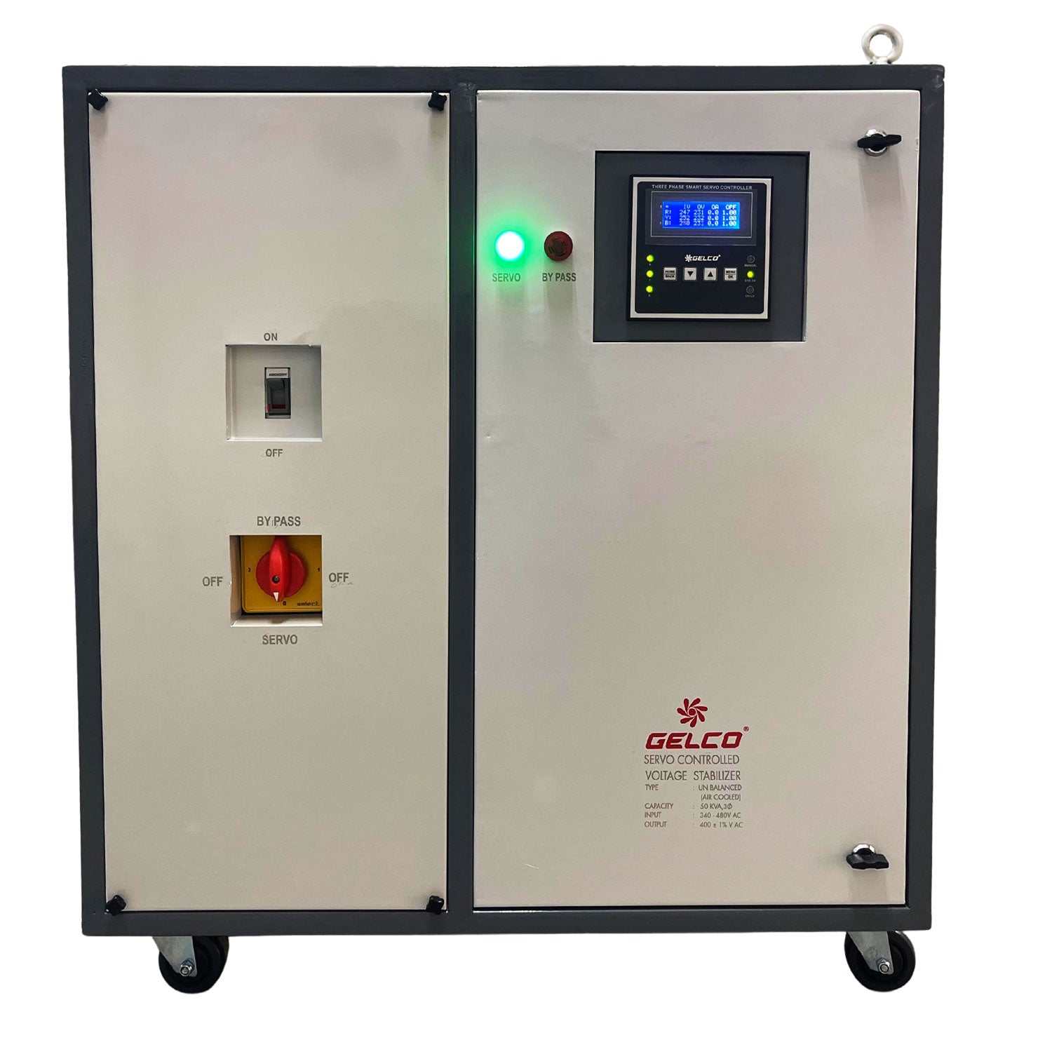 Servo Stabilizer 35 KVA to 55 KVA, Suitable For Water pumps, Bungalows, Hospitals, Small Scale Industries, Corporate Offices, Air Cooled & Bypass MCB/MCCB